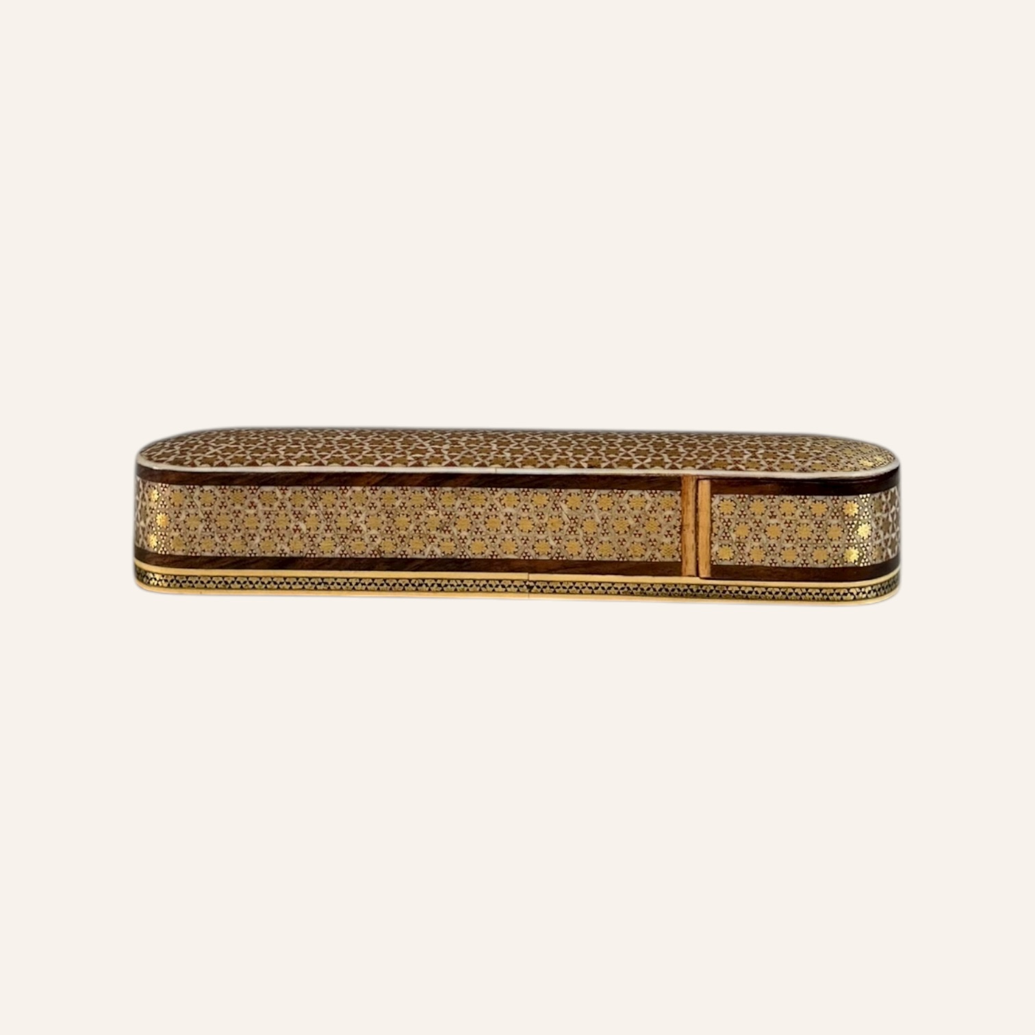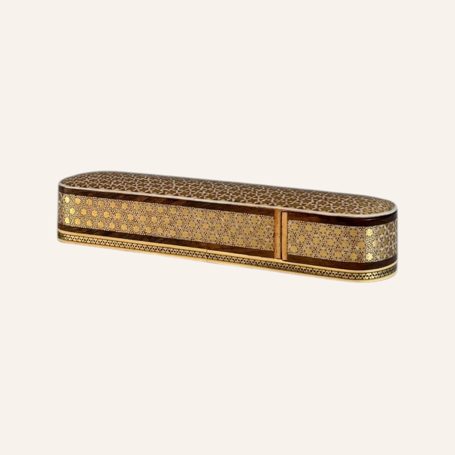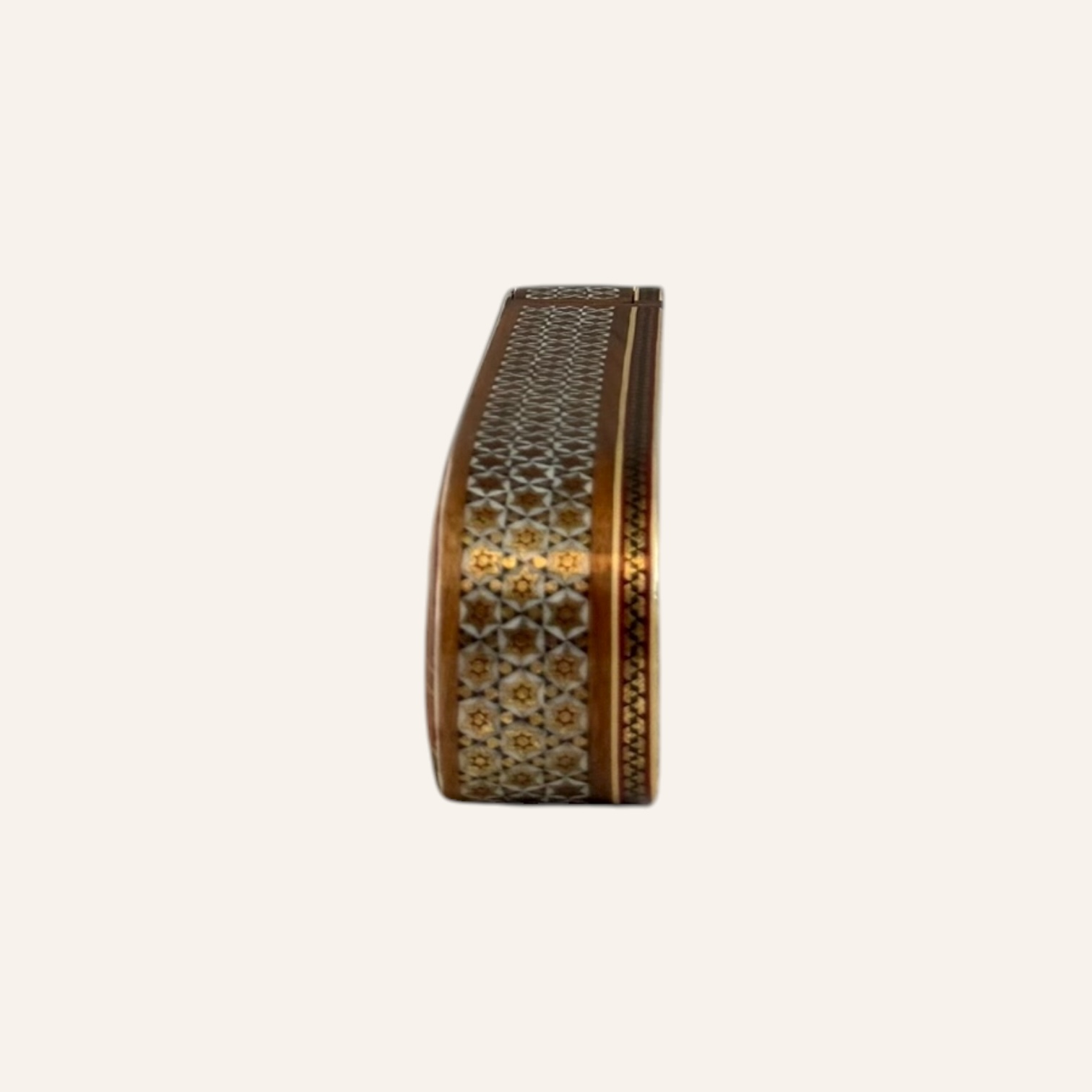 Rooted in the golden age of Persian craftsmanship, Khatam is the delicate art of inlaying fine geometric patterns into wood, brass, and bone — a meticulous technique passed through generations of master artisans. Each piece is composed of hundreds of hand-cut miniatures, arranged with precision to create star-shaped mosaics that reflect harmony, patience, and mathematical beauty.