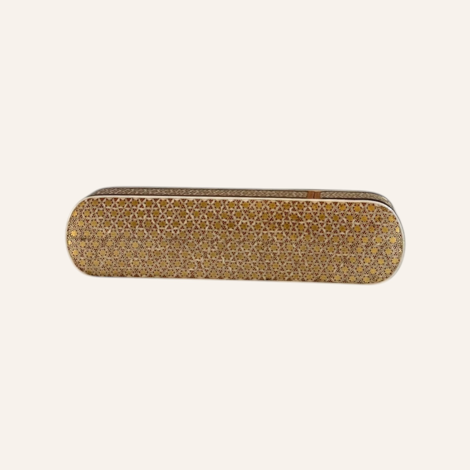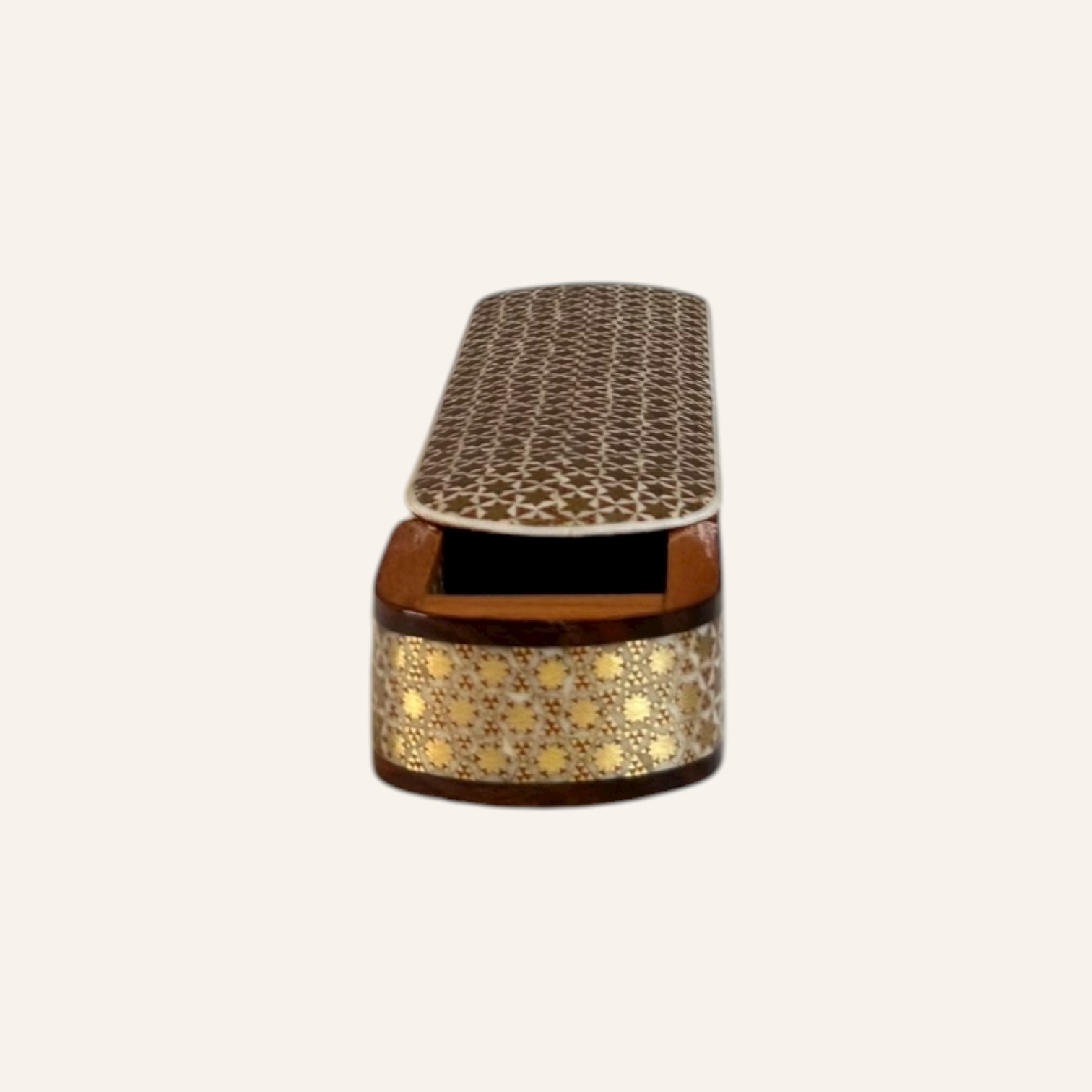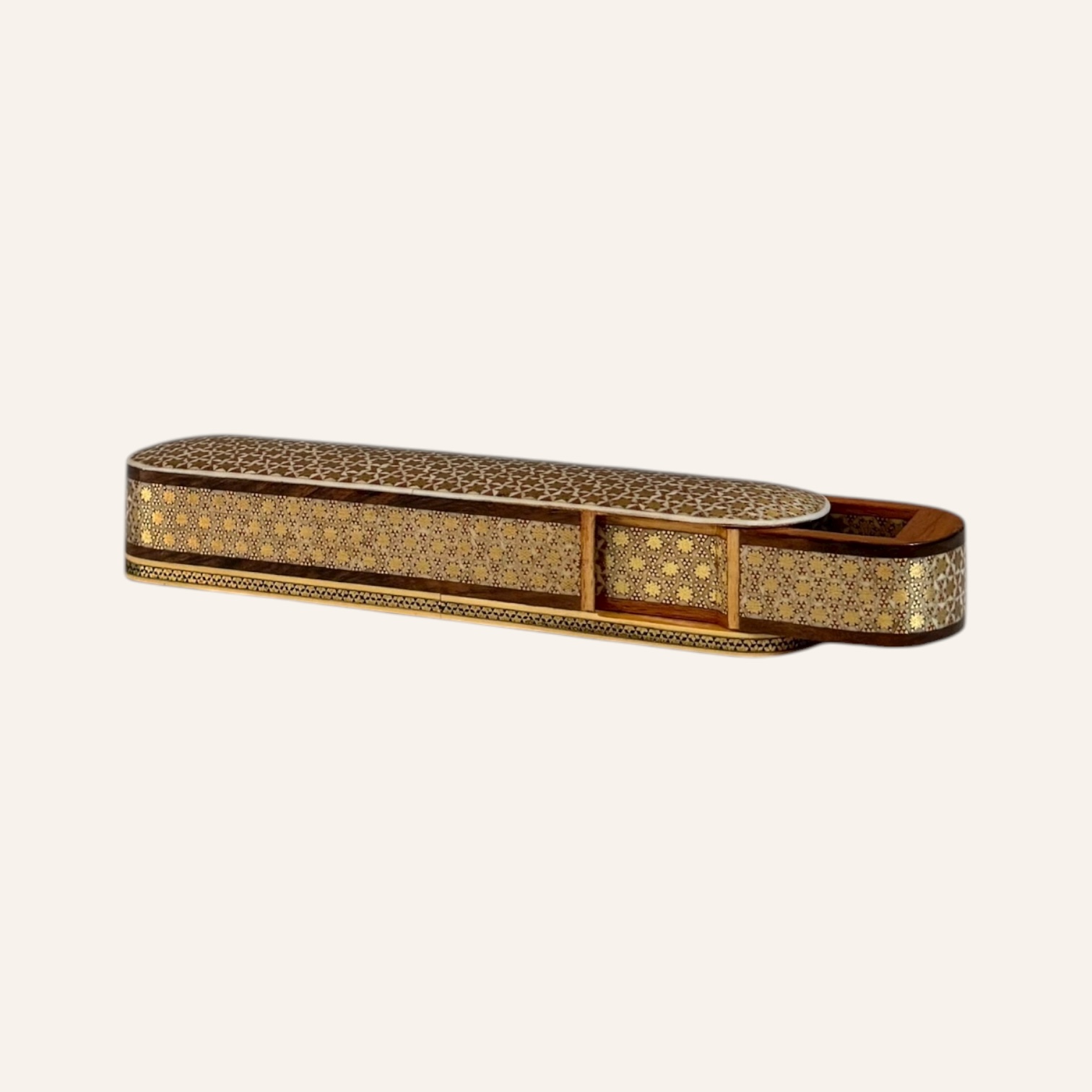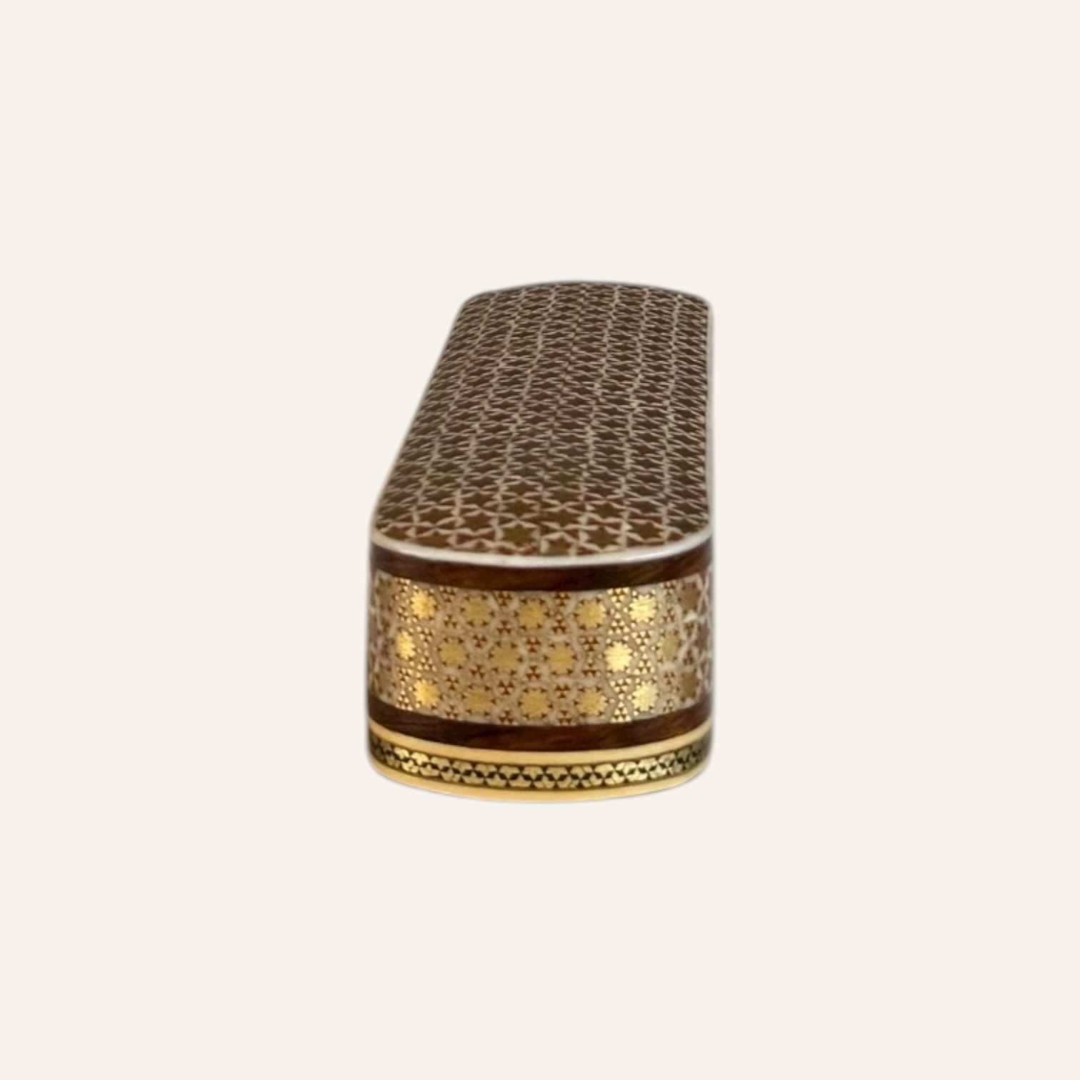 Rooted in the golden age of Persian craftsmanship, Khatam is the delicate art of inlaying fine geometric patterns into wood, brass, and bone — a meticulous technique passed through generations of master artisans. Each piece is composed of hundreds of hand-cut miniatures, arranged with precision to create star-shaped mosaics that reflect harmony, patience, and mathematical beauty.
