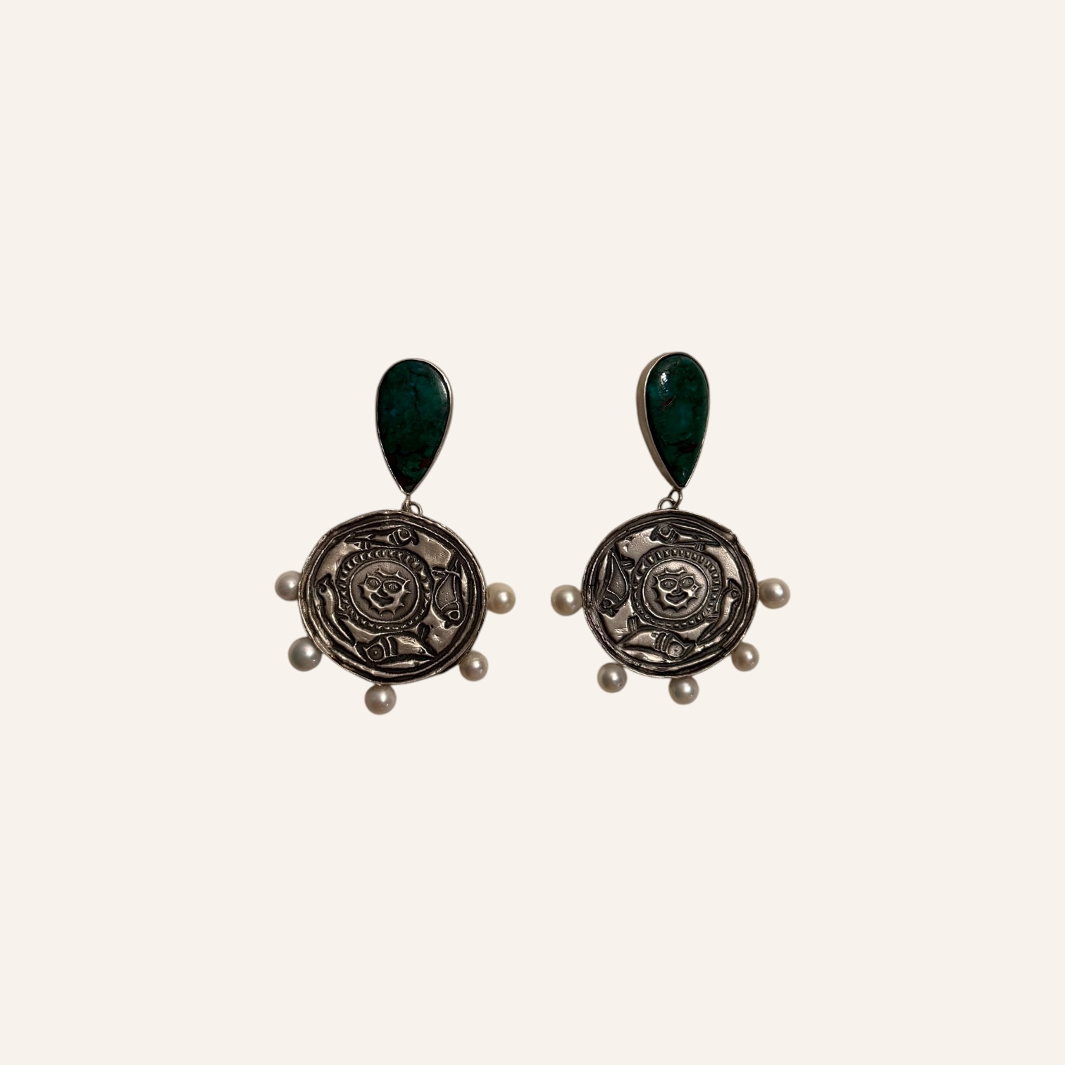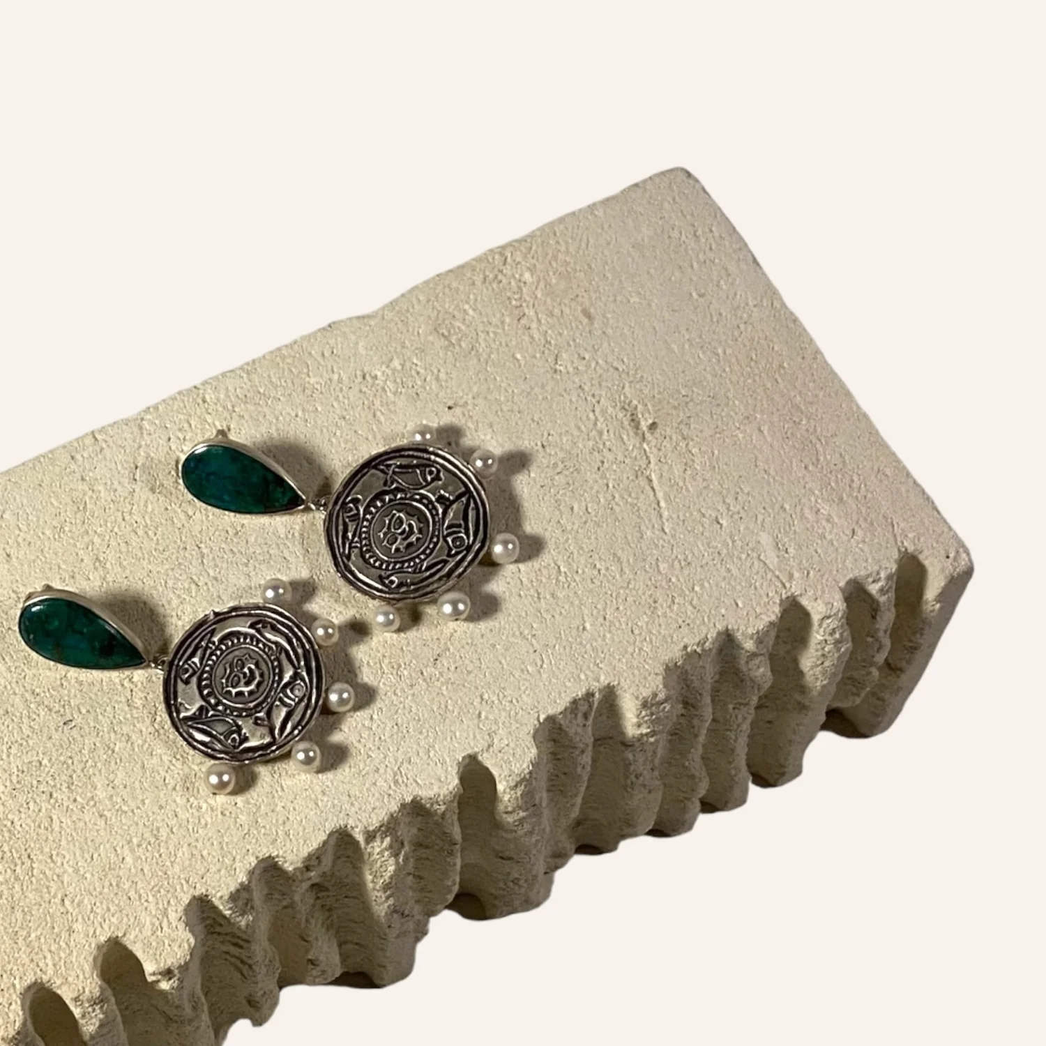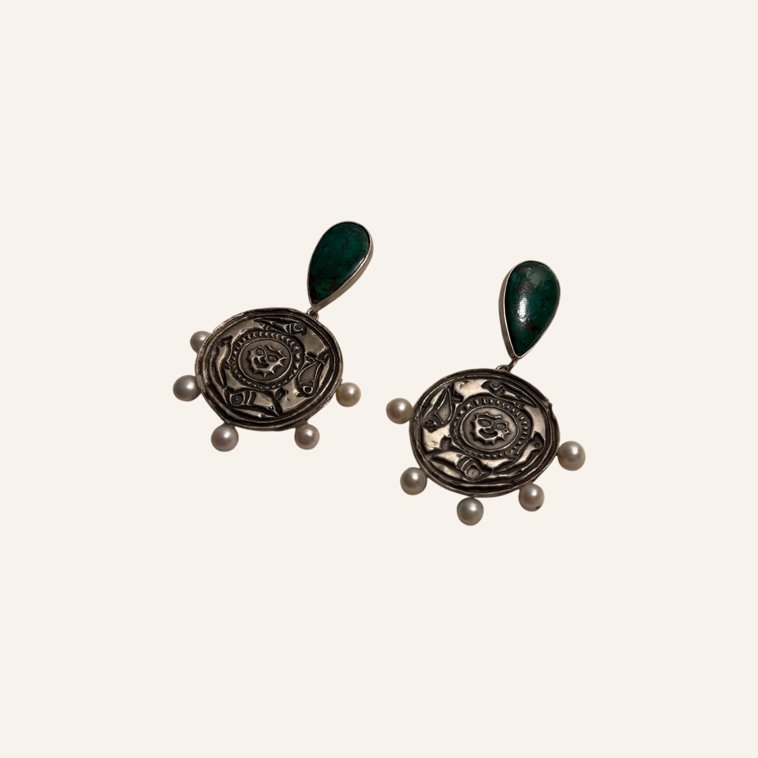 Sterling Silver, Chrysocolla GemStone & Pearls
